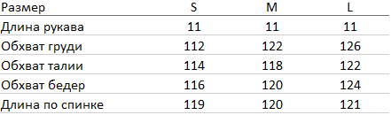 Обмеры изделия: